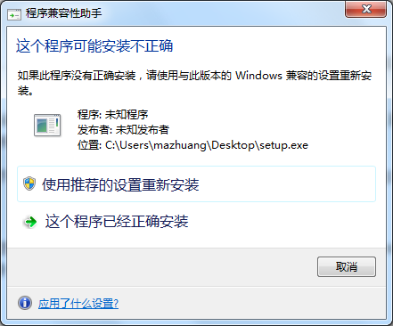 每次软件运行完退出后会弹出「程序兼容性助手」(Program Compatibility Assistant, 简称 PCA),提示软件未正确安装。