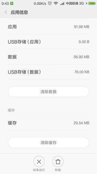 这是手机的「设置」——「应用」里的已安装应用的详情页,这里面会显示缓存的大小,而且提供了清理缓存的功能,这就是我们做「系统缓存」清理想做的事情。