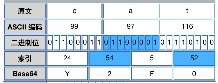 这样可能不太直观,举个例子就容易理解了。比如我们对 cat 进行编码: