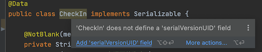 当一个类实现 Serializable 接口后,在 IDEA 里默认不会提示生成 serialVersionUID。