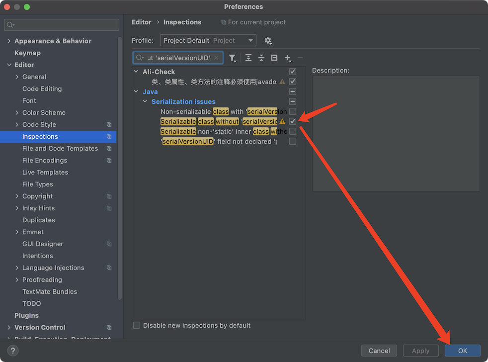 - 搜索 Serializable class without ‘serialVersionUID’